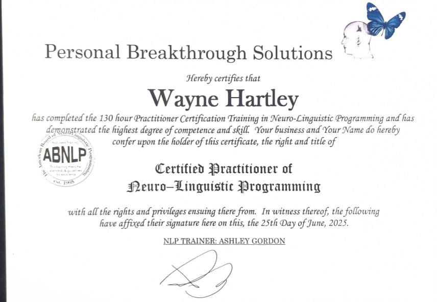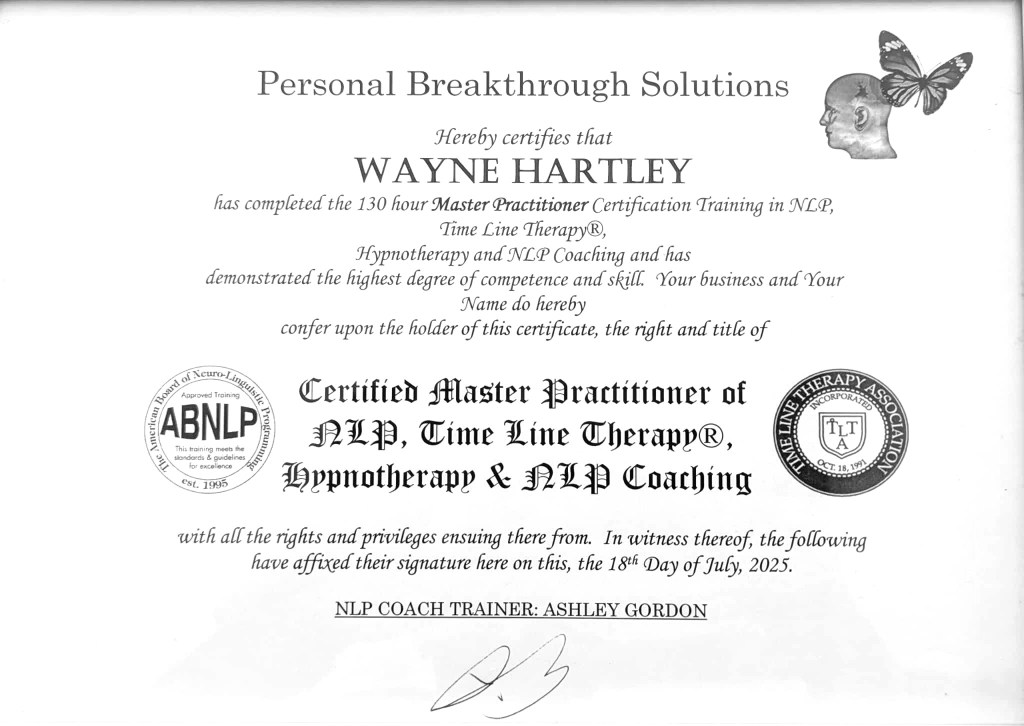 I am more than thrilled to share a major milestone in my personal and professional journey: I am now a Certified Master Practitioner in Coaching, Neuro-Linguistic Programming (N.L.P), Timeline Therapy®, and Hypnotherapy!
